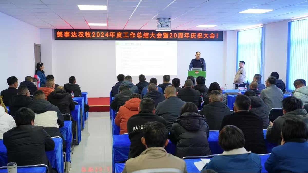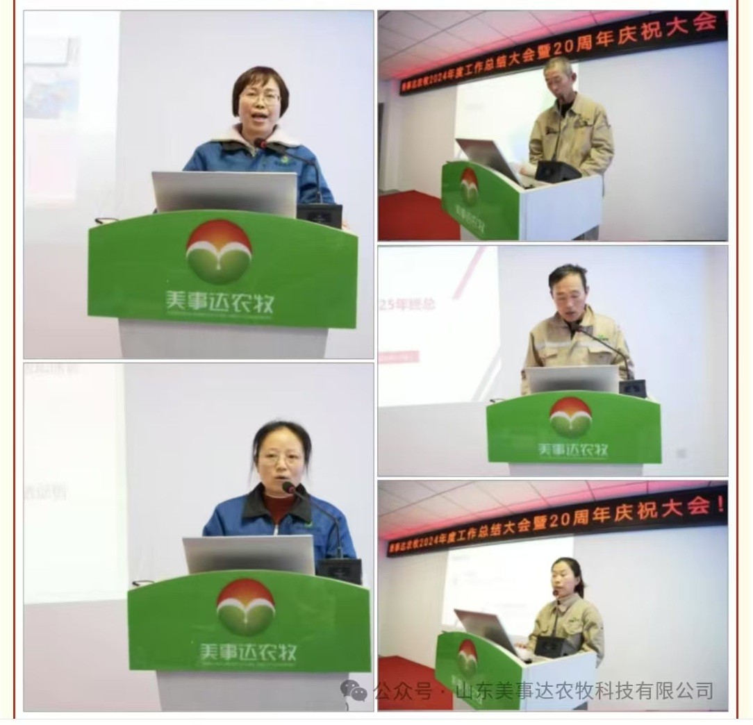? ? ? ? 風(fēng)雨兼程二十載,砥礪奮斗再出發(fā)。2025年1月18日下午,美事達農(nóng)牧2024年工作總結(jié)大會暨成立20周年慶祝大會在公司新辦公樓會議室如期舉行。山東省農(nóng)業(yè)科學(xué)院畜牧獸醫(yī)研究所盛清凱研究員、趙紅波研究員、張相倫博士,山東農(nóng)業(yè)工程學(xué)院農(nóng)業(yè)科技學(xué)院副院長刁有江教授、公司總經(jīng)理楊趙軍、部分核心客戶及全體員工齊聚一堂,共同回顧公司過去一年的工作和成果,并繪制新一年的發(fā)展藍圖。會議由副總經(jīng)理李曉鵬主持。