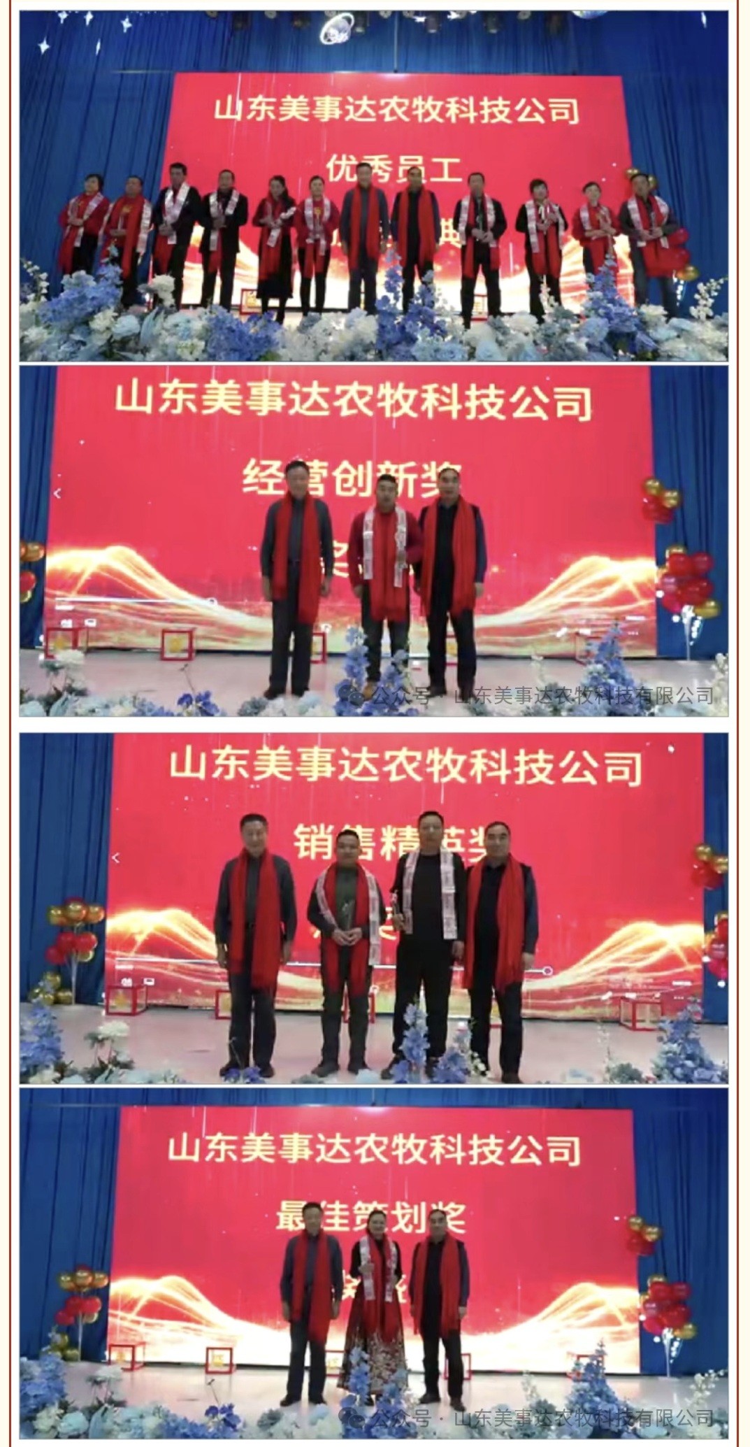 ? ? ? ? 為表彰2024年表現(xiàn)突出的員工,激勵員工在新的一年里再創(chuàng)佳績,公司股東為獲得“優(yōu)秀員工獎”、“經(jīng)營創(chuàng)新獎”、“銷售精英獎”、“最佳策劃獎”等多個獎項的員工頒發(fā)了獎杯和獎金。